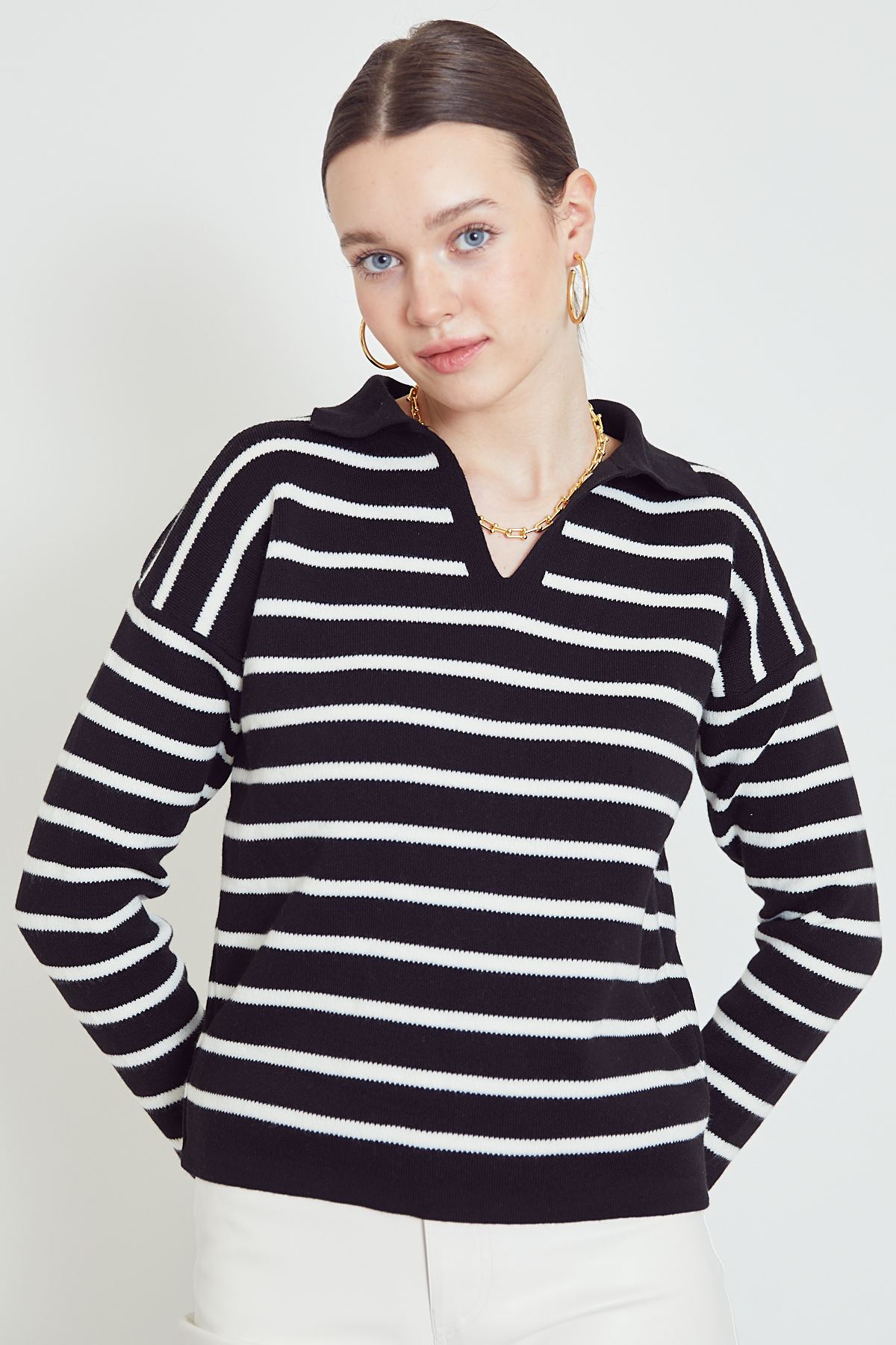 Ürün Özellikleri: Polo yaka, çizgili kazak.