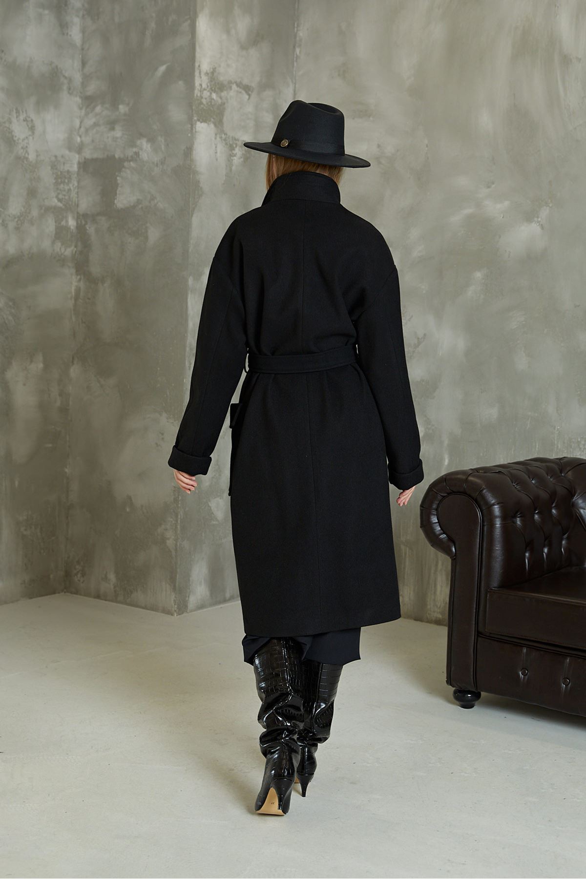 Kuşaklı Kaşe Kaban-Siyah