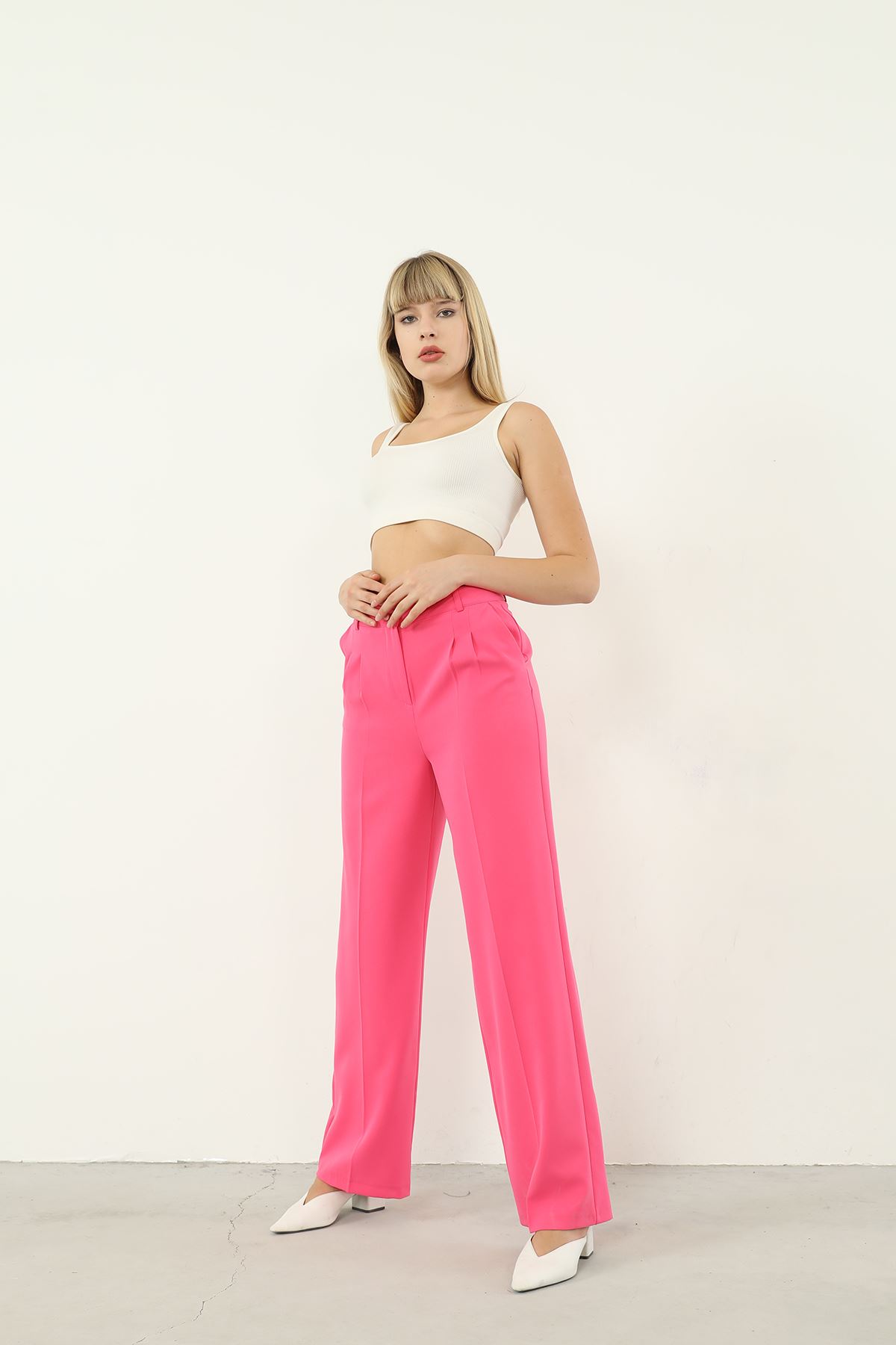 Bol kesim, tek kapama düğme, önü pilili, yüksek bel, ön 2 cepli, arka 2 gizli cep pantolon.